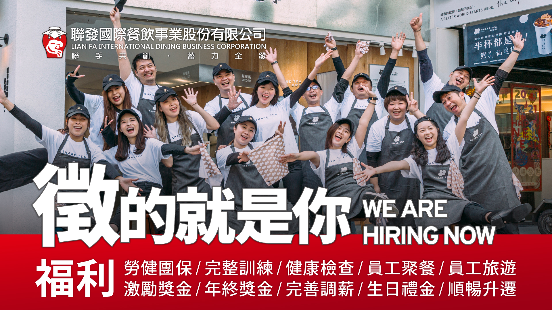 「聯發國際餐飲集團」致力於國際品牌發展,注重國際視野的人才培育,透過不斷突破傳統的餐飲經營模式、精進品牌發展與創新、完善連鎖餐飲管理制度,打造穩健的企業體質,期待成為領軍全球的餐飲集團。歡迎對國際視野充滿無限熱忱的夥伴加入,期待與您聯手共創,一起將台灣品牌推向國際發光!經營理念《聯手共創、蓄力全發、永續國際》打造消費者、加盟主、供應商、員工及股東都滿意、幸福的企業。