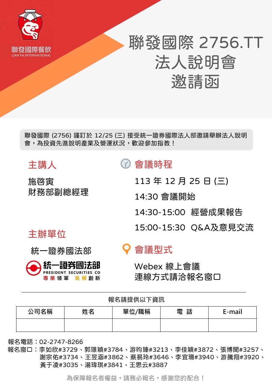 聯發國際餐飲事業股份有限公司